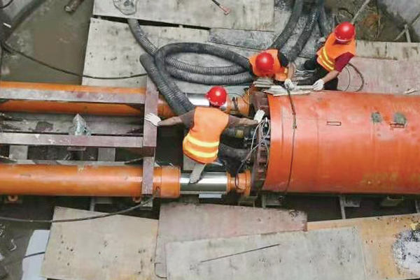 湖南頂管機(jī)千斤頂施工現(xiàn)場(chǎng)
